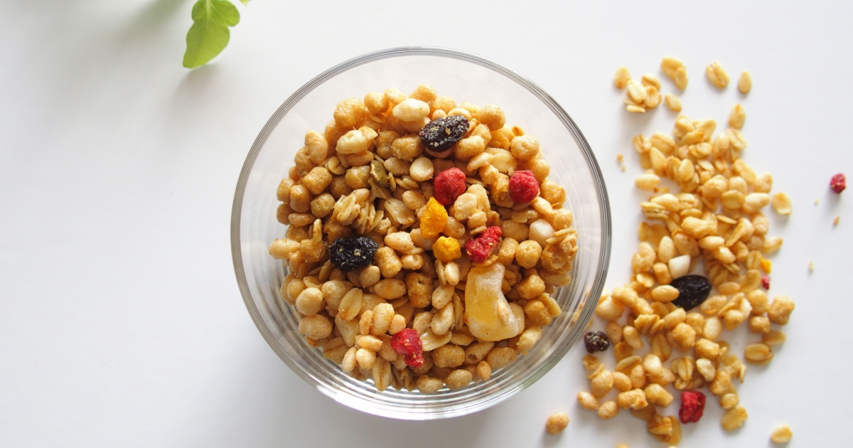 フルーツとグラノーラのコンビネーションで、ほんのり甘みのあるフルーツ味は子供に人気。牛乳や豆乳と混ぜるだけですぐに食べられる手軽さもあり、朝ごはんやおやつとして食べられています。