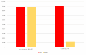 これを見ると、The coloristは小紅書とWeiboを平均的に振り分けているが、WOW COLOURは完全に小紅書集中型となっている。