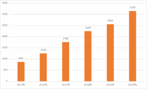 【グラフ】中国医療美容業界の市場規模の推移(単位:億元)