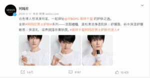 アルマーニは2020年から代言人として人気男性アイドル「易烊千玺」をブランドの顔として起用している。
