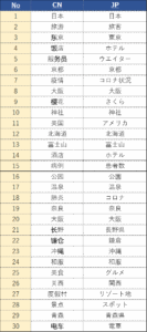 続いて、中国消費者のコロナ禍においても訪日旅行に関するクチコミキーワードを見てみよう。
