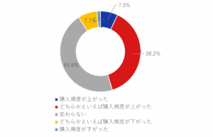 アンケート回答を見ると「頻度が上がった」「どちらかといえば上がった」という回答は全体の4割強いる。