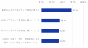 その理由となっているのは「お気に入りブランドが増えた」ことで、越境ECなどで中国進出を図る日本ブランドが増え、消費者との接点が増えたことがあるのではないかと考えられる。