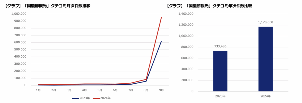国慶節の旅行についてのクチコミキーワードを整理し、2023年と比較をしてみた。